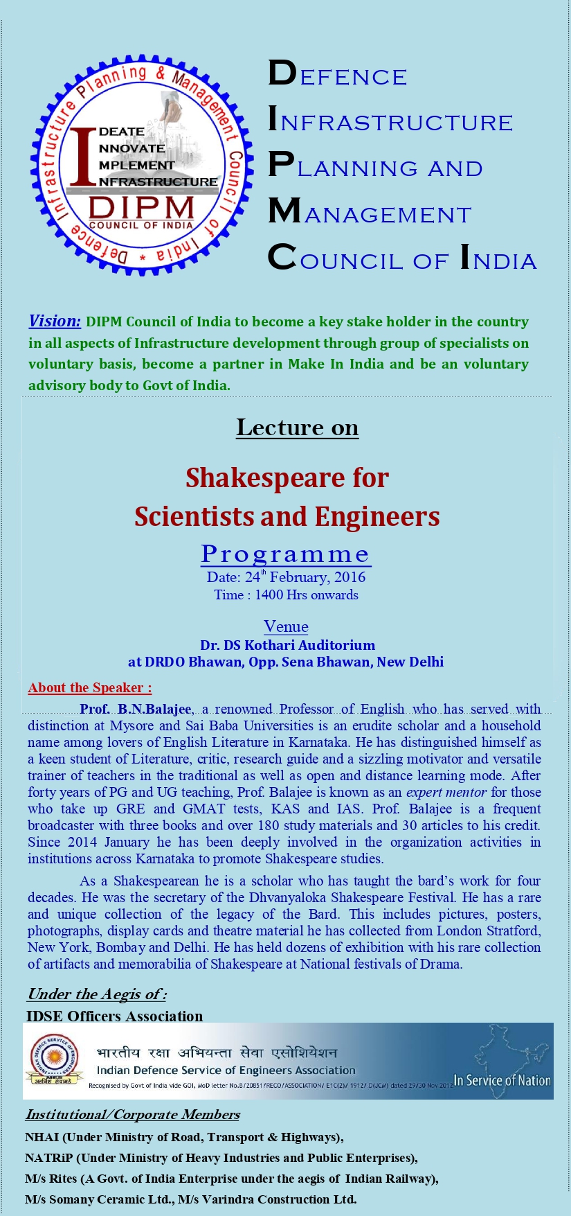 DIPM Council of India is registered as Design Infrastructure Planning and Management Society, a non profit educational, literary, Scientific Society working in the field of Infrastructure Technology, Innovations, Sustainable Development, Project Management, Contract Management, Project Delivery, Skilling India etc. in general and Defence sector in particular, in Government/Public/Private sector.